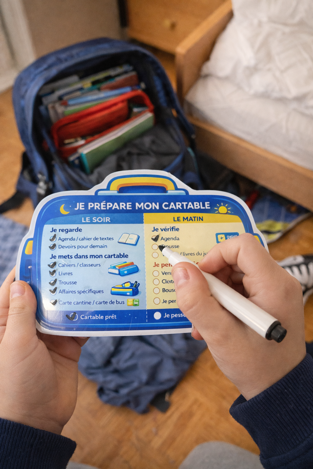 Une checklist dédiée au rangement du cartable Pour ne plus dépendre d’un adulte pour vérifier chaque soir.